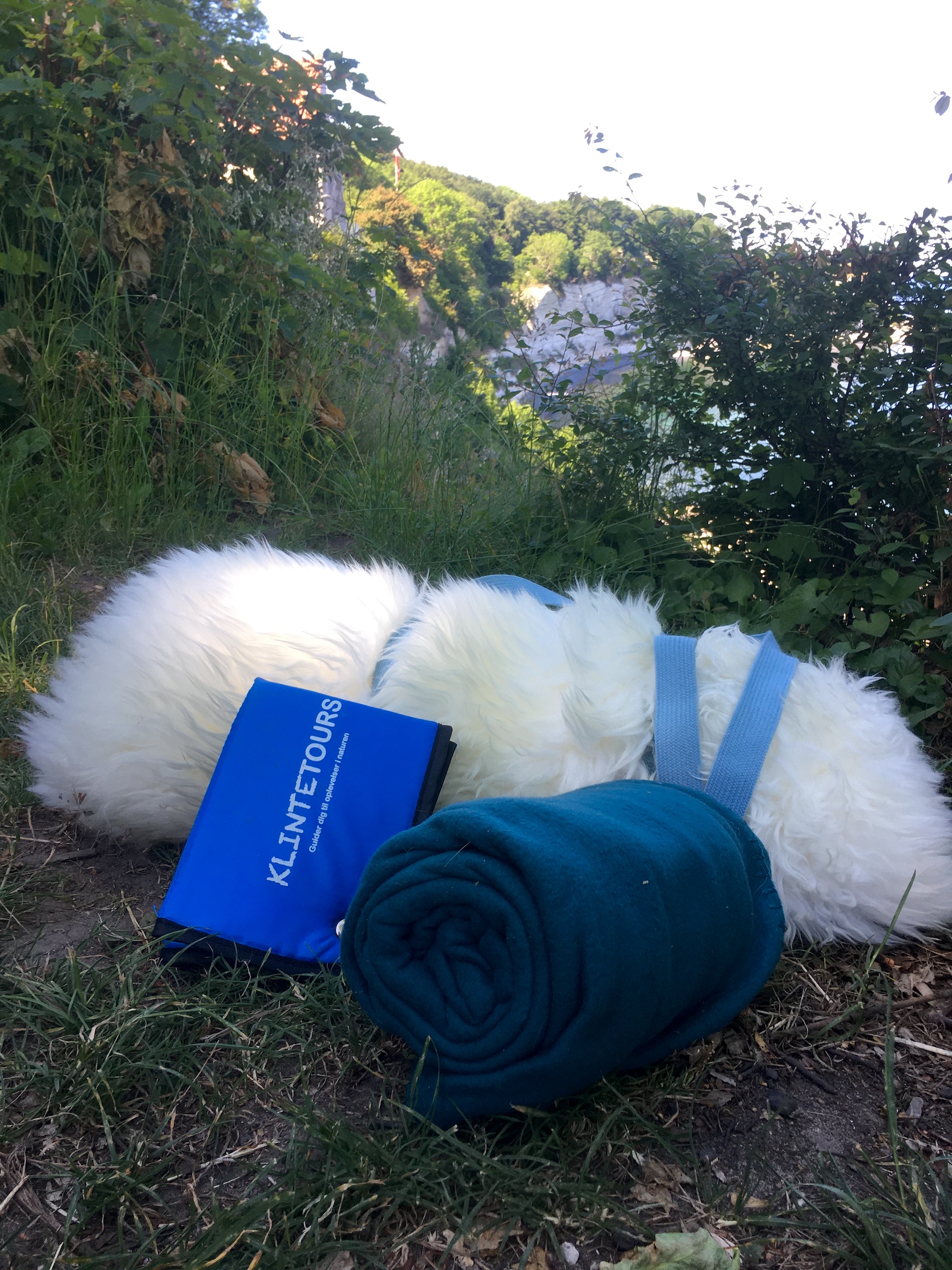 Anne medbringer også siddeunderlag af forskellig slags. Du vælger selv, hvilket du ønsker at sidde og bære på. Der medfølger en bæresele til lammeskindet.