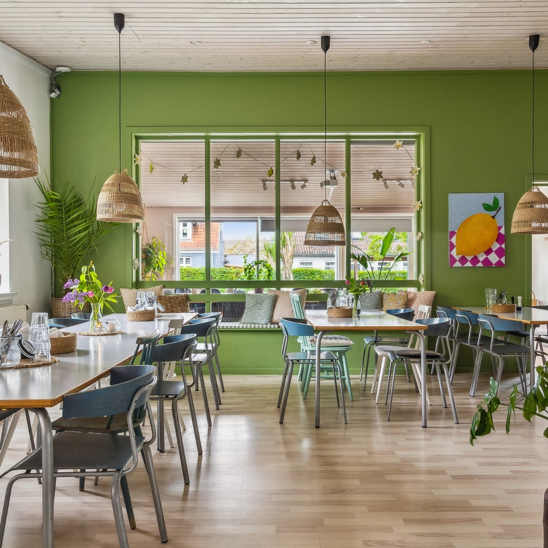 - Vi får kaffe og kage på Café Mad & Ro.